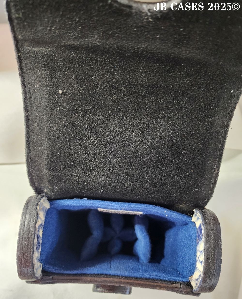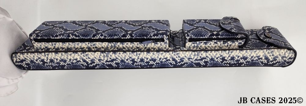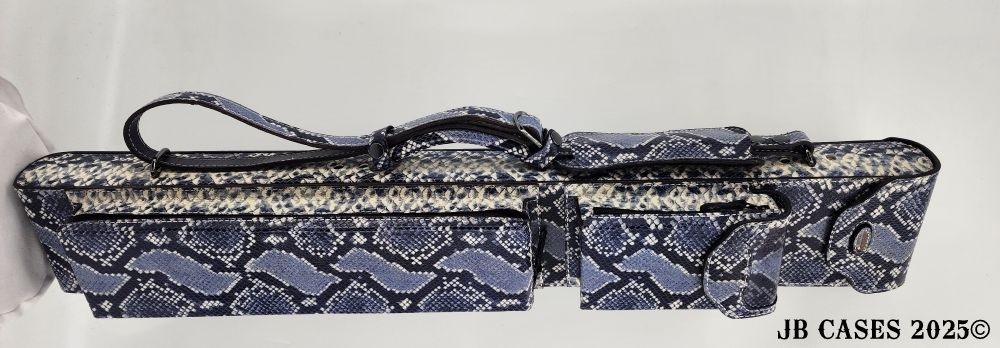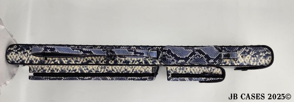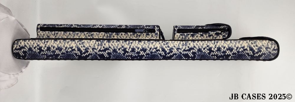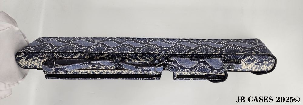 This Snake Embossing Cowhide Leather with Oil Tan Mason Case holds 2 butts and 4 shafts. Maximum interior length capacity is 31.5". This case is made of durable oil-tanned Leather with reinforced leather stress points. Features an UltraPad interior and very comfortable handles. Featuring a non-slip well padded shoulder strap. Zippers are the highest quality available and each zipper has two pulls in case one should break. Two roomy pockets for easy access to your essentials.