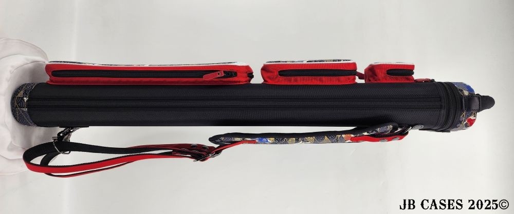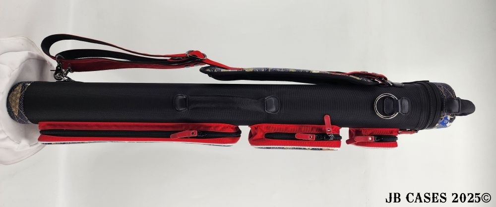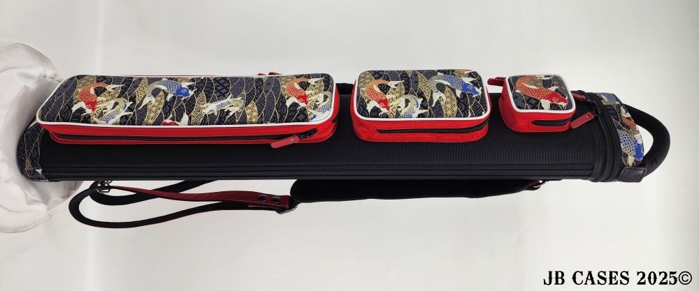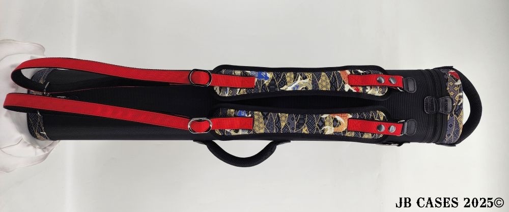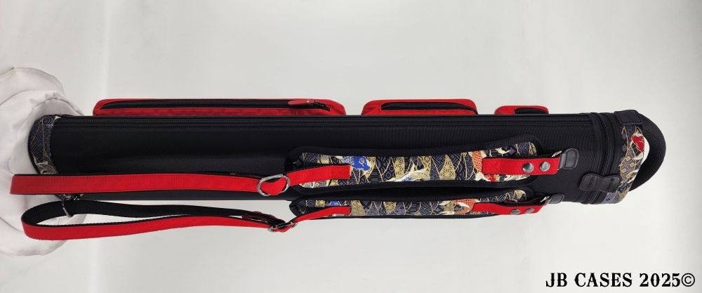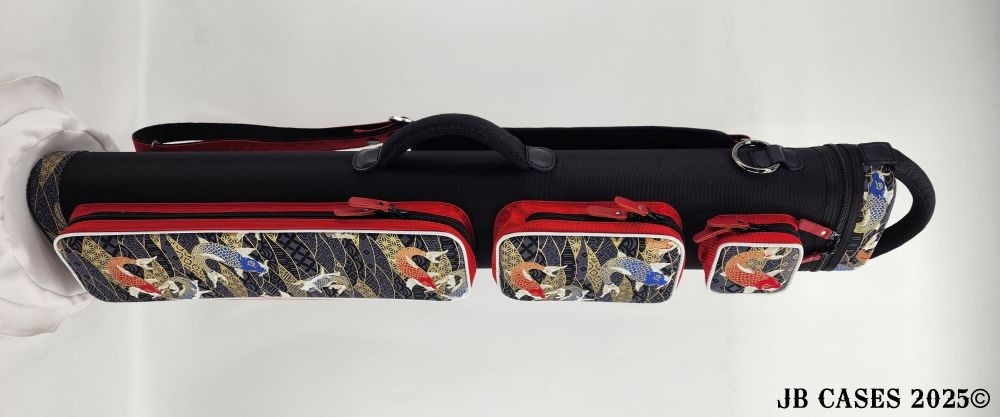 This rugged case holds up to 2 butts and 5 shafts OR 3 butts and 4 shafts. Maximum interior length capacity is 32.5". This case is made of durable nylon and polyester, and Shiny Golden Koi Print Fabric.