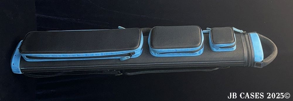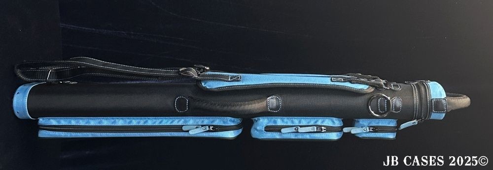 This case holds 2 butts and 5 shafts OR 3 butts and 4 shafts. Maximum interior length capacity is 32.5". This case is made of durable nylon/polyester material with reinforced leather stress points. Features an UltraPad interior, comfortable handles, a heavy duty rubber bottom, and a non-slip padded shoulder strap.