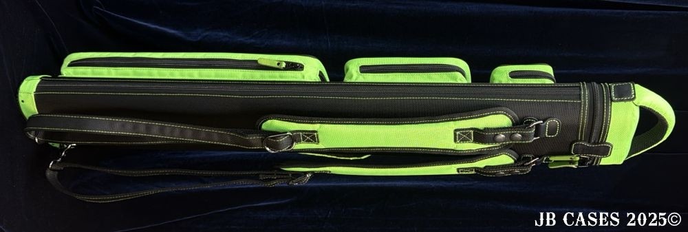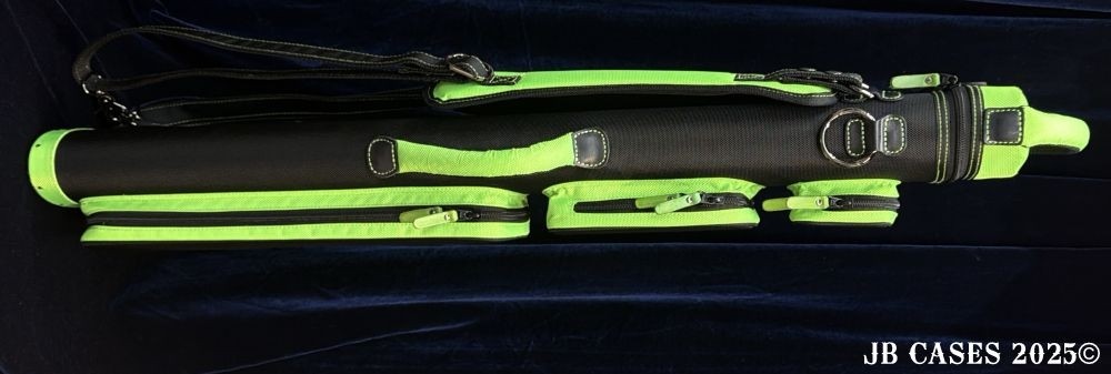 This case holds 2 butts and 5 shafts OR 3 butts and 4 shafts. Maximum interior length capacity is 32.5". This case is made of durable nylon/polyester material with reinforced leather stress points. Features an UltraPad interior, comfortable handles, a heavy duty rubber bottom, and a non-slip padded shoulder strap.