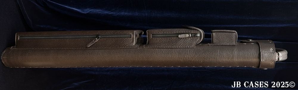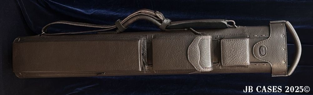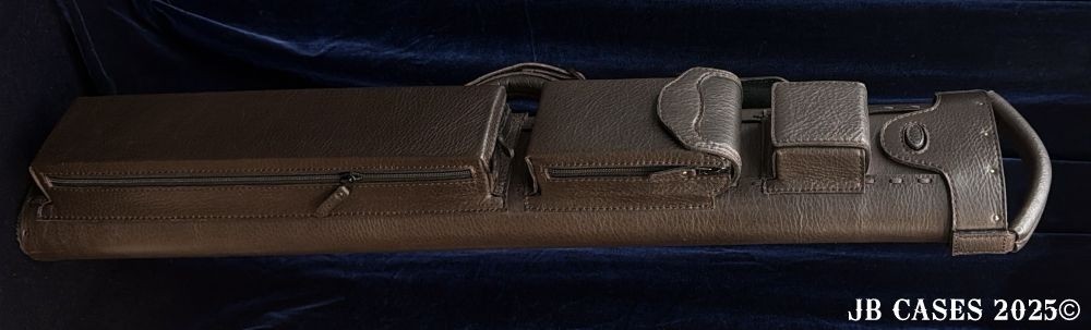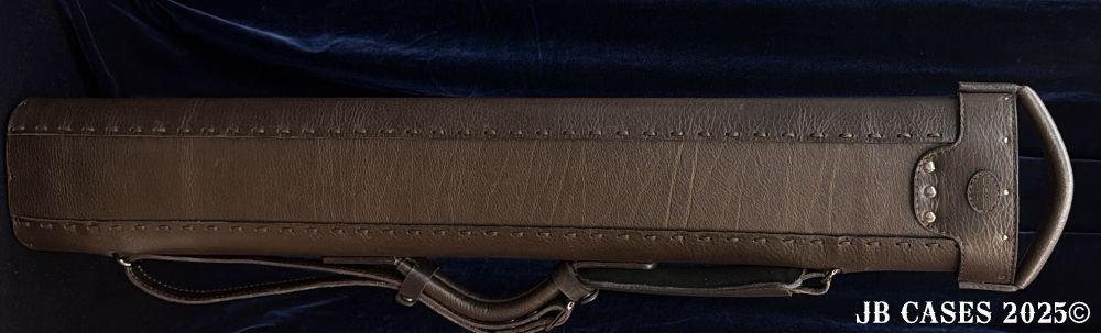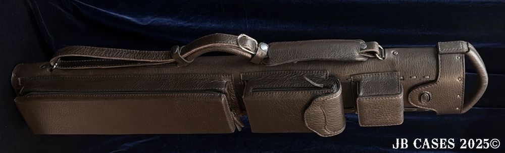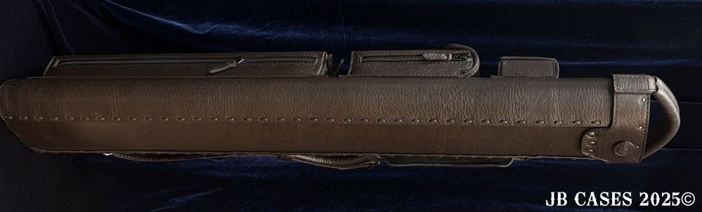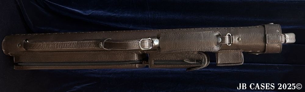 This case holds 2 butts and 5 shafts OR 3 butts and 4 shafts. Maximum interior length capacity is 31.5". This case is made of durable oil tan leather with reinforced leather stress points. Features an UltraPad interior and very comfortable handles. Featuring a non-slip well padded shoulder strap. Zippers are the highest quality available and each zipper has two pulls in case one should break. Three roomy pockets for easy access to your essentials.