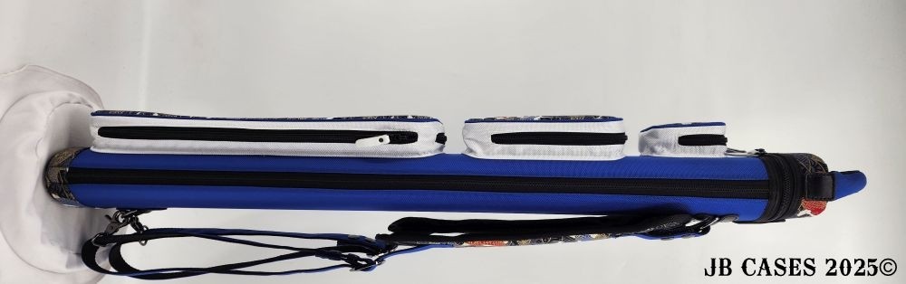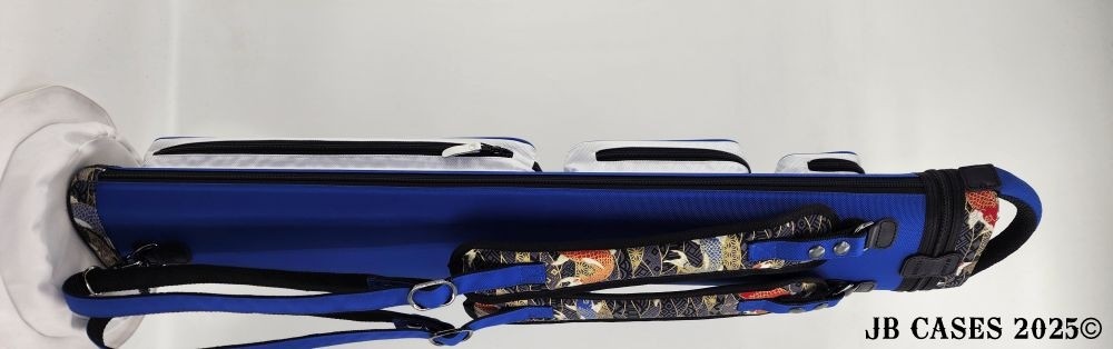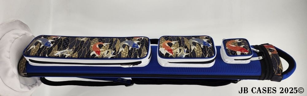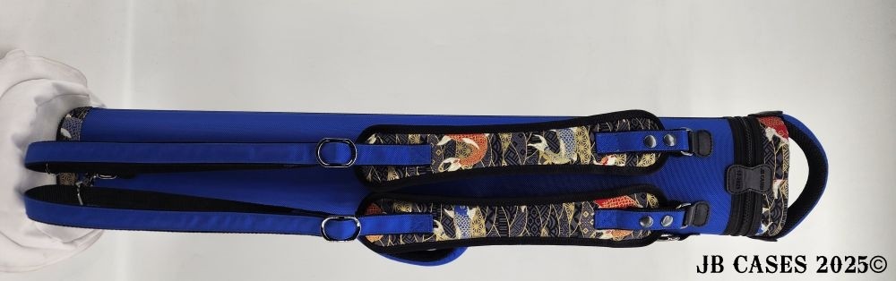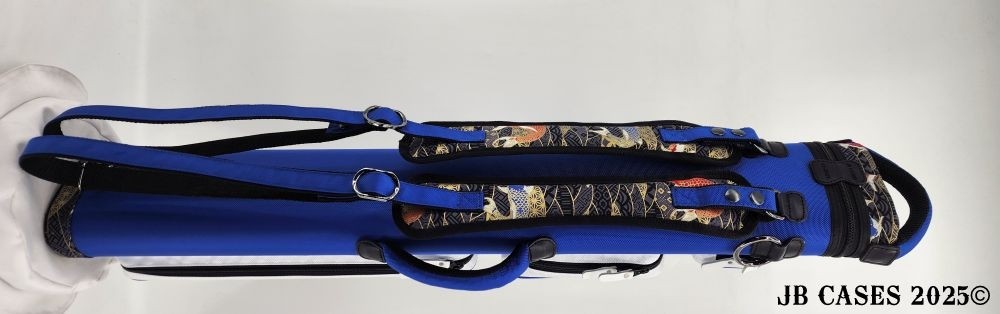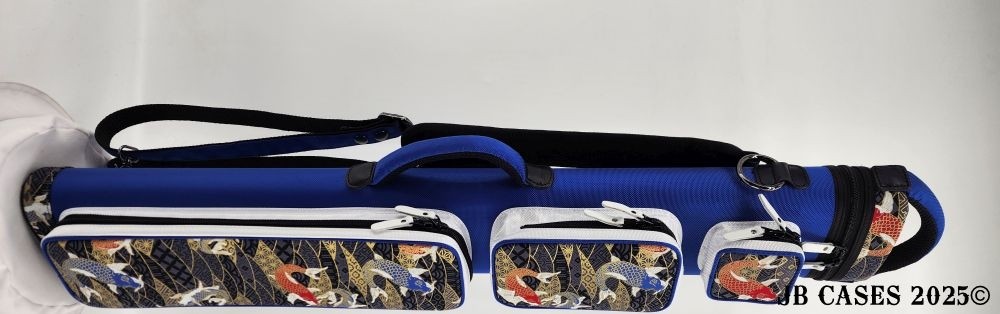 This rugged case holds up to 3 butts and 6 shaft. Maximum interior length capacity is 32.5". This case is made of durable nylon and polyester, and Shiny Golden Koi Print Fabric.
