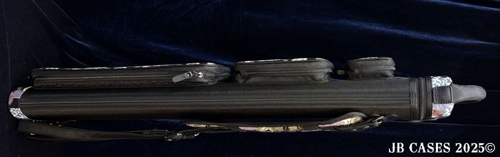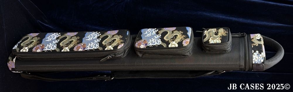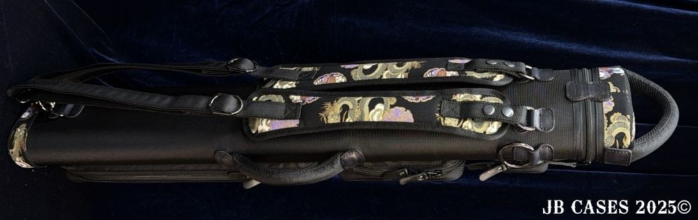 This rugged case holds up to 3 butts and 6 shafts. Maximum interior length capacity is 32.5". This case is made of durable nylon and polyester, and Dragon Waves Print Fabric. Black Zipper Pulls and Stitching.