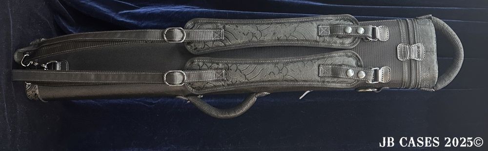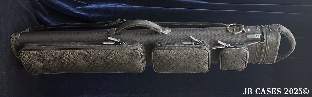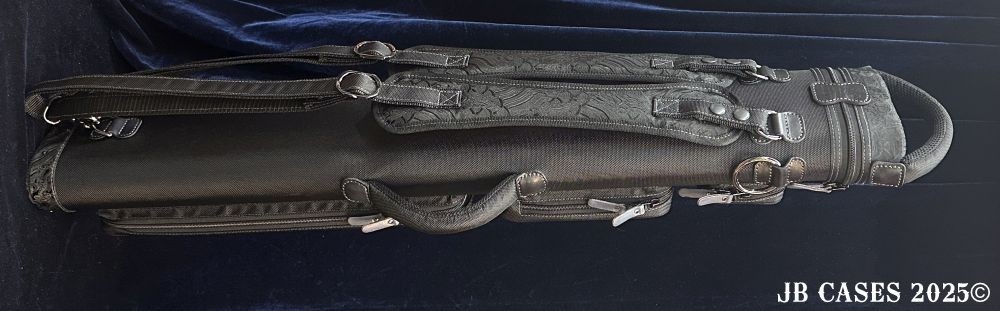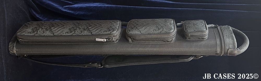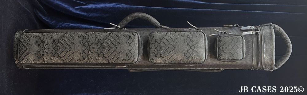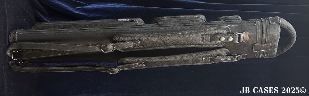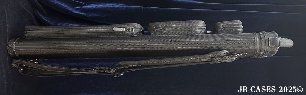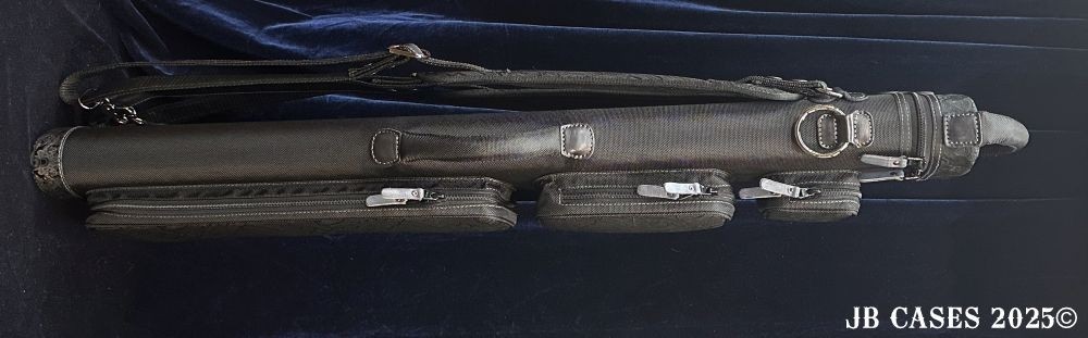 This rugged case holds up to 3 butts and 6 shafts. Maximum interior length capacity is 32.5". This case is made of durable nylon and polyester. Slate Gray Zipper Pulls and Stitching. Distinctions and Features: -Slate Gray interior -Reinforced leather stress points -UltraPad Interior -Ergonomic top and side handles -Non-slip padded shoulder strap(s) -3 spacious pockets for easy access to your essentials -Backpack strap setup -Towel ring included