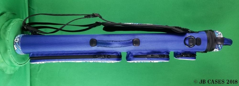 This rugged case holds up to 3 butts and 6 shafts. Maximum interior length capacity is 32.5". This case is made of durable nylon and polyester,