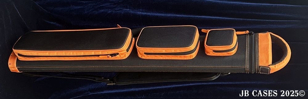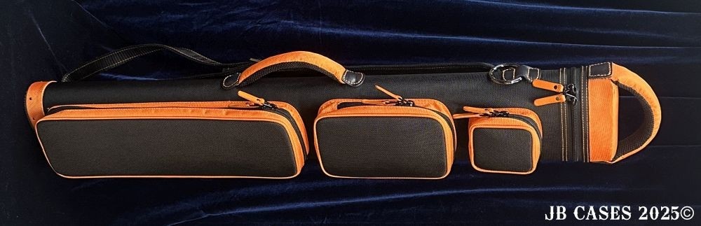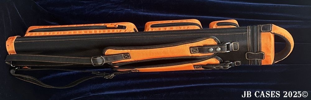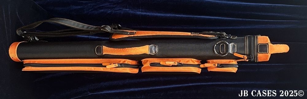 This case holds 3 butts and 6 shafts. Maximum interior length capacity is 32.5". This case is made of durable nylon/polyester material with reinforced leather stress points. Features an UltraPad interior, comfortable handles, a heavy duty rubber bottom, and a non-slip padded shoulder strap.