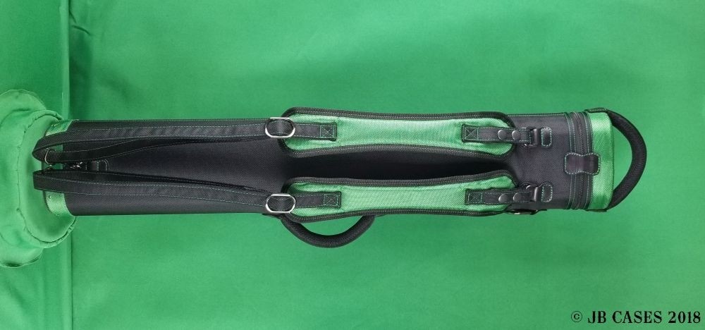This case holds 3 butts and 6 shafts. Maximum interior length capacity is 32.5". This case is made of durable nylon/polyester material with reinforced leather stress points. Features an UltraPad interior, comfortable handles, a heavy duty rubber bottom, and a non-slip padded shoulder strap.
