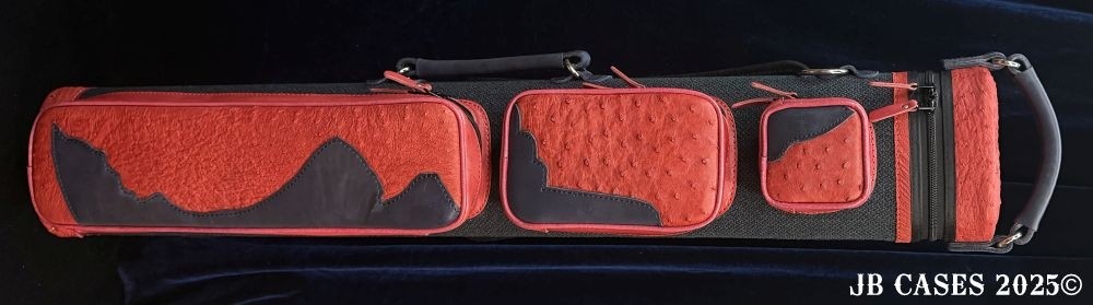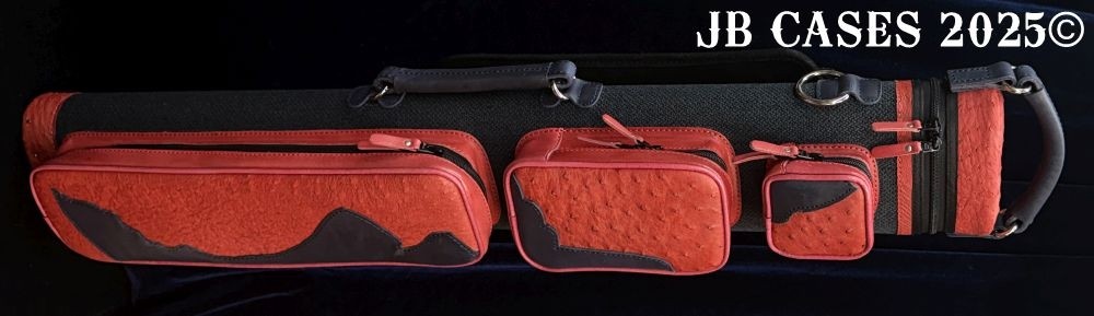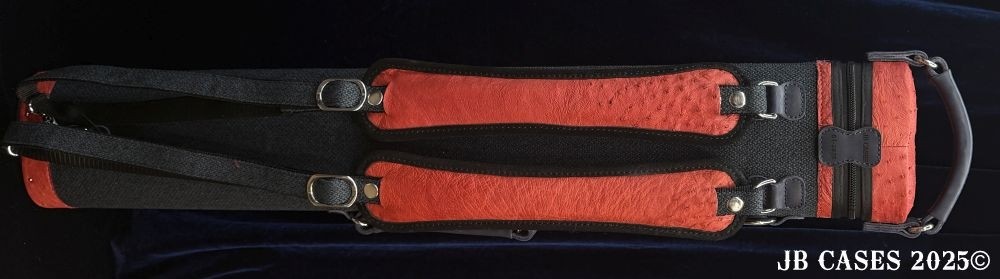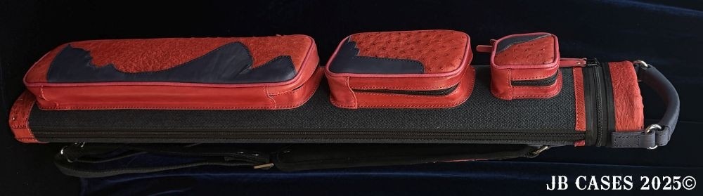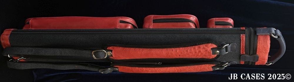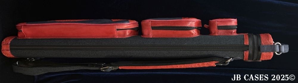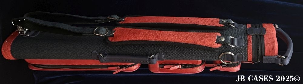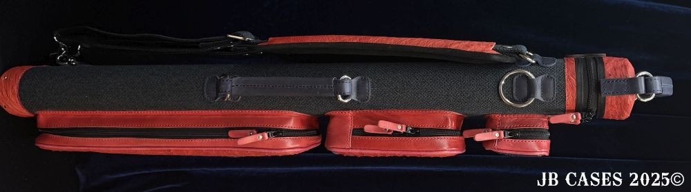 This case holds 3 butts and 6 shafts. Maximum interior length capacity is 32.5". This case is made of durable tweed material combined with high quality leather with reinforced leather stress points. Features an UltraPad interior and very comfortable leather handles. Has a heavy duty rubber bottom. Featuring a non-slip well padded shoulder strap. Zippers are the highest quality available and each zipper has two pulls in case one should break. Three roomy pockets for easy access to your essentials.