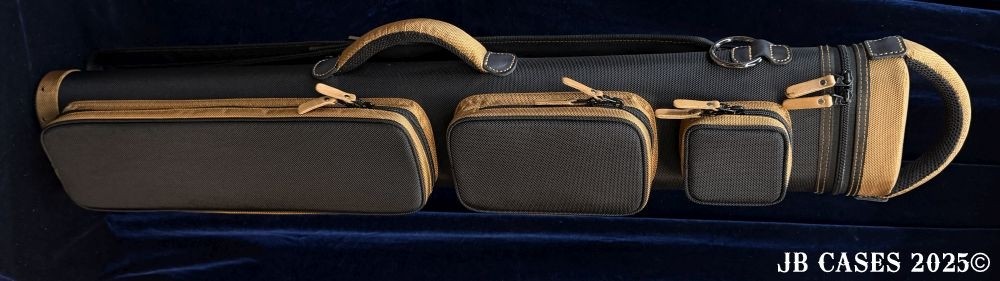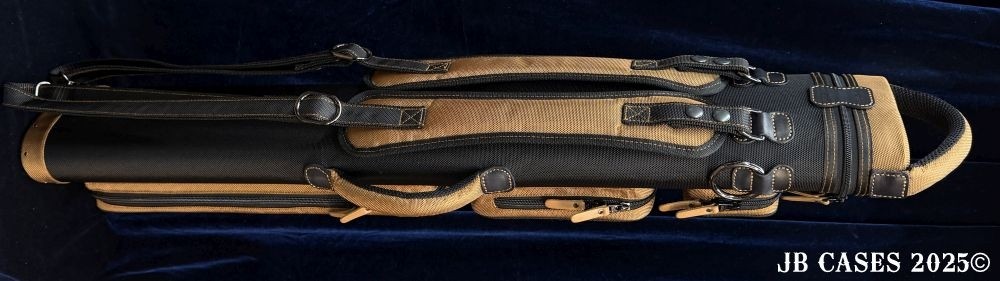 This case holds 3 butts and 6 shafts. Maximum interior length capacity is 32.5". This case is made of durable nylon/polyester material with reinforced leather stress points. Features an UltraPad interior, comfortable handles, a heavy duty rubber bottom, and non-slip padded backpack straps.