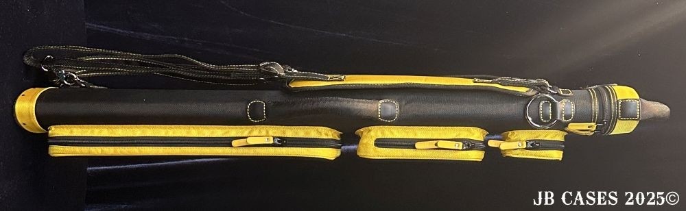 This case holds 4 butts and 8 shafts. Maximum interior length capacity is 32.5". This case is made of durable nylon/polyester material with reinforced leather stress points. Features an UltraPad interior, comfortable handles, a heavy duty rubber bottom, and a non-slip padded shoulder strap.