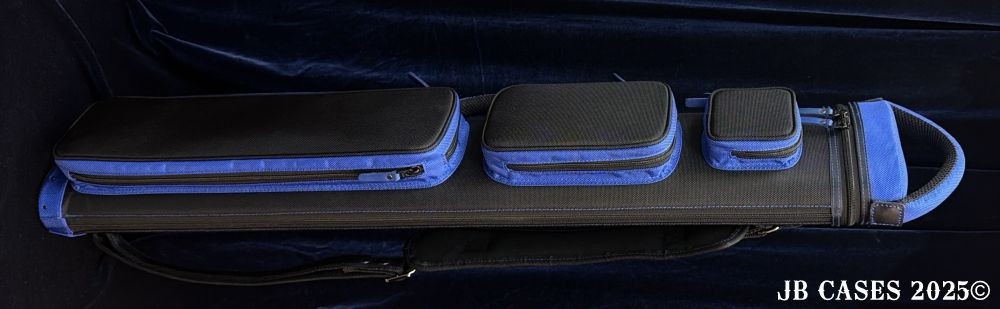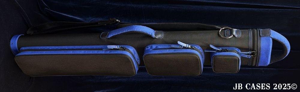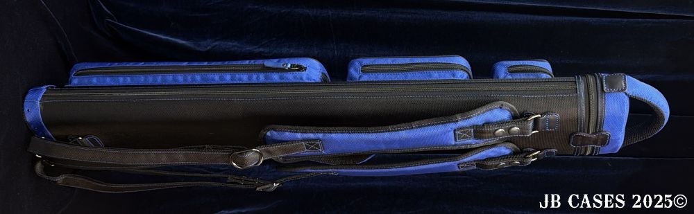 This case holds 4 butts and 8 shafts. Maximum interior length capacity is 32.5". This case is made of durable nylon/polyester material with reinforced leather stress points. Features an UltraPad interior, comfortable handles, a heavy duty rubber bottom, and a non-slip padded shoulder strap.