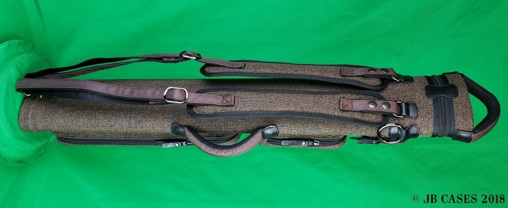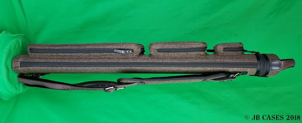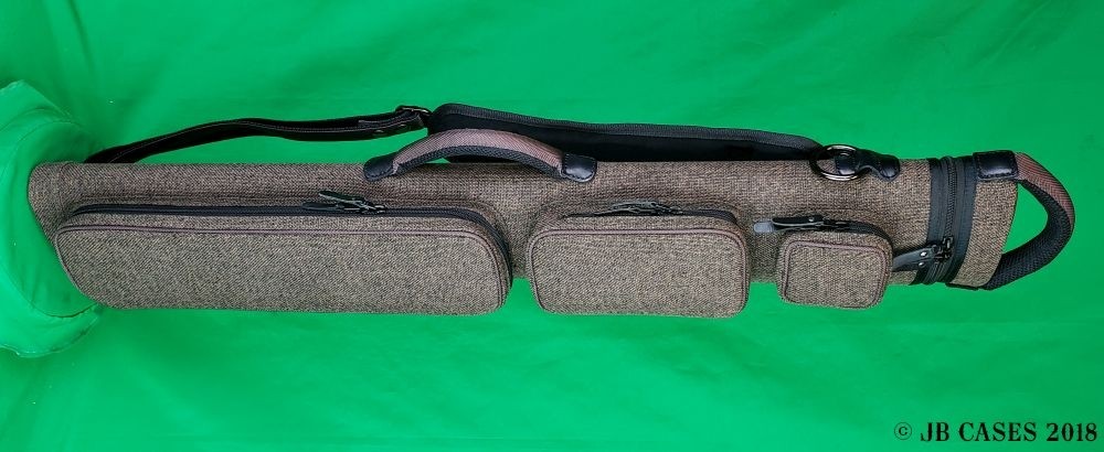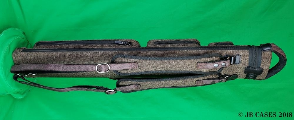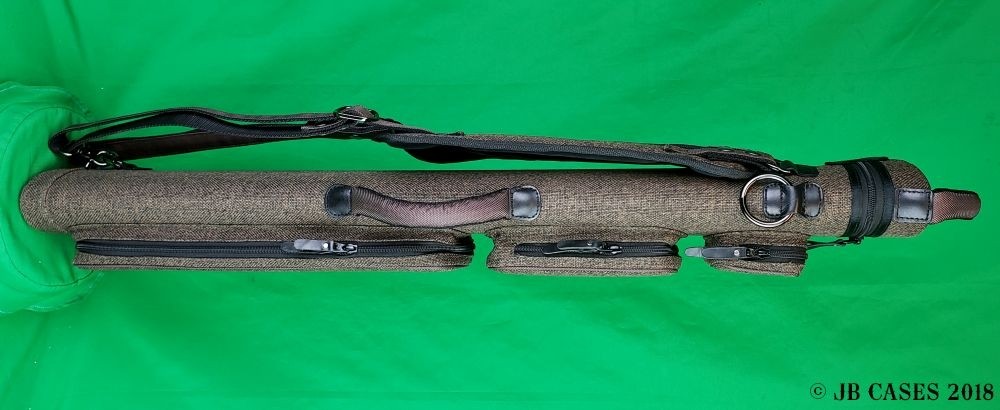 This case holds 4 butts and 8 shafts. Maximum interior length capacity is 32.5". This case is made of durable nylon/polyester material with reinforced leather stress points. Features an UltraPad interior, comfortable handles, a heavy duty rubber bottom, and a non-slip padded shoulder strap. Zippers are the highest quality available and each zipper has two pulls in case one should break. Three spacious pockets for easy access to your essentials, as well as backpack-style padded straps. Towel Ring included.