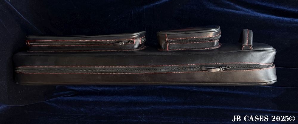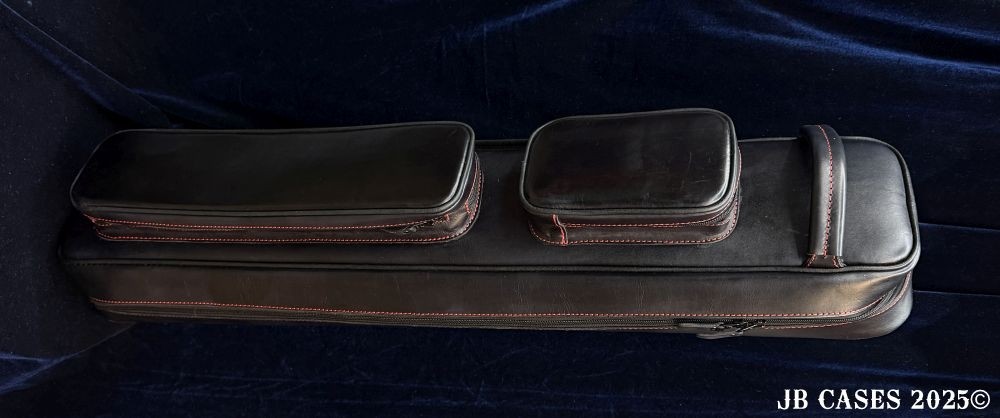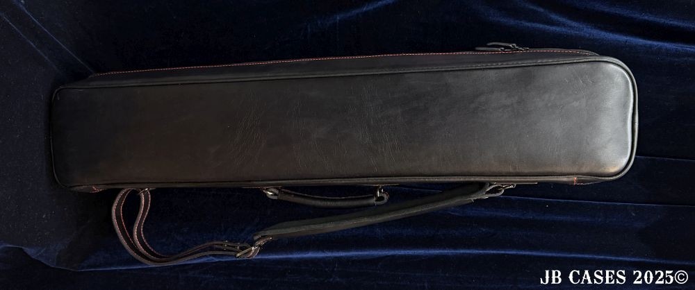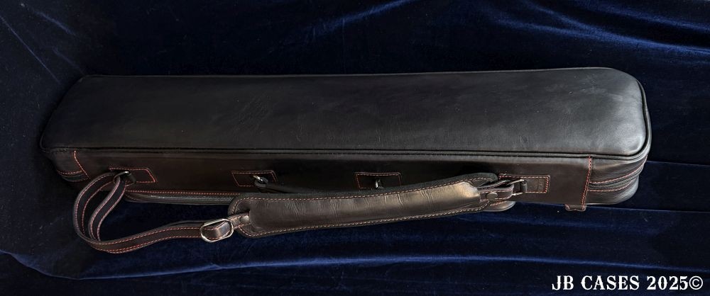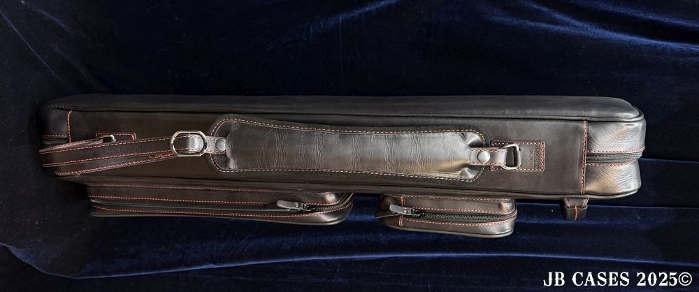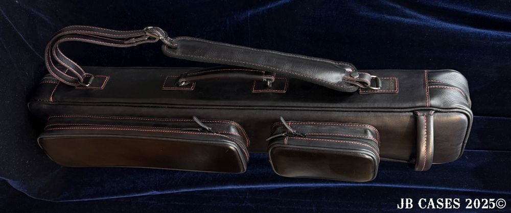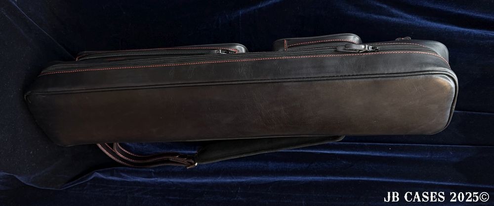 This case holds 4 butts and 8 shafts. Maximum interior length capacity is 32.5". This case is made of Textured Oil tan Leather with reinforced stress points. Features an UltraPad interior and very comfortable handles. Featuring a non-slip well padded shoulder strap. Zippers are the highest quality available and each zipper has two pulls in case one should break. Three roomy pockets for easy access to your essentials.