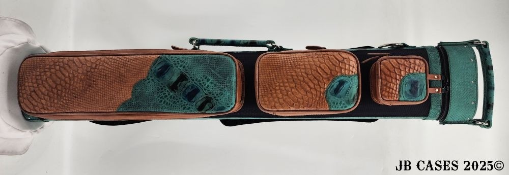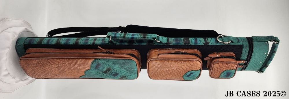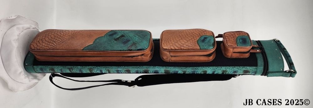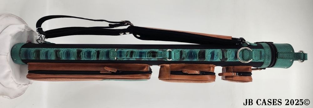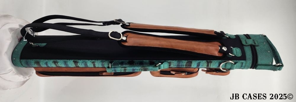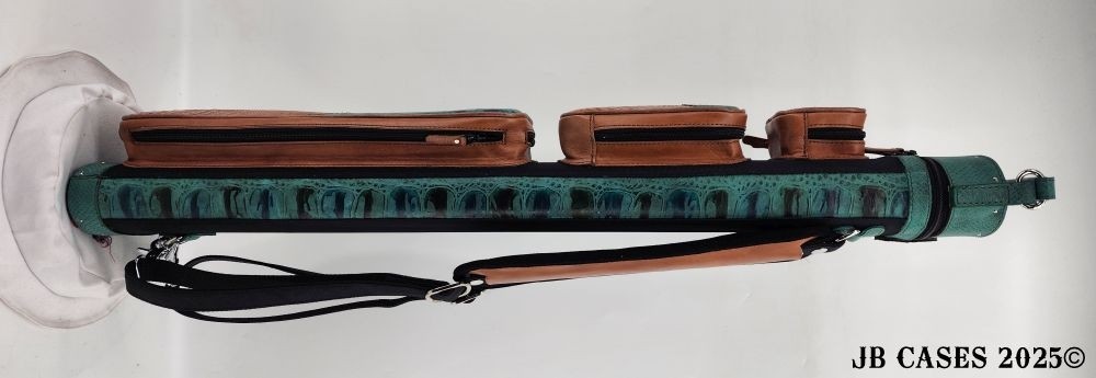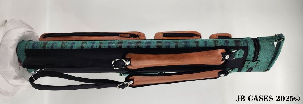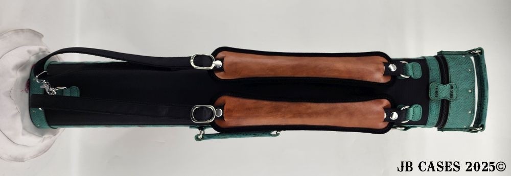 This case holds 3 butts and 6 shafts. Maximum interior length capacity is 32.5". This case is made of durable tweed material combined with high quality leather with reinforced leather stress points. Features an UltraPad interior and very comfortable leather handles. Has a heavy duty rubber bottom. Featuring a non-slip well padded shoulder strap. Zippers are the highest quality available and each zipper has two pulls in case one should break. Three roomy pockets for easy access to your essentials.