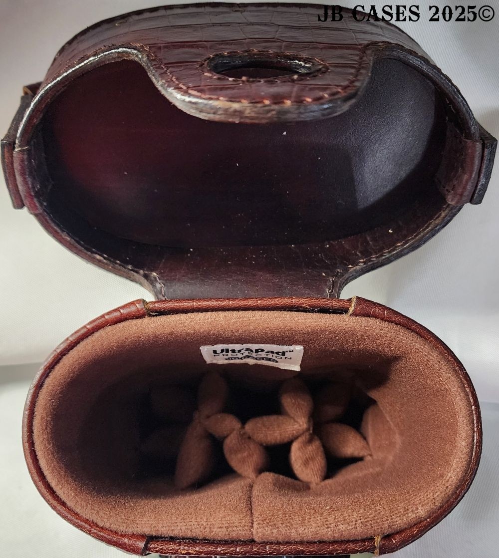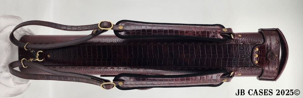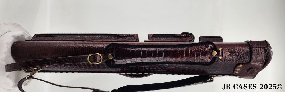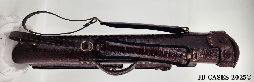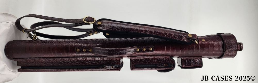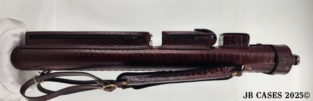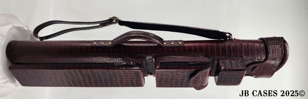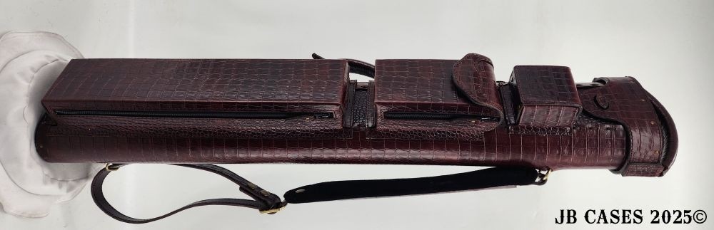 This Gator Embossing Cowhide Leather with Oil Tan Leather Case holds 3 butts and 6 shafts. Maximum interior length capacity is 31.5". This case is made of durable oil-tanned Leather with reinforced leather stress points. Features an UltraPad interior and very comfortable handles. Featuring non-slip well padded shoulder straps. Zippers are the highest quality available and each zipper has two pulls in case one should break. Three roomy pockets for easy access to your essentials.