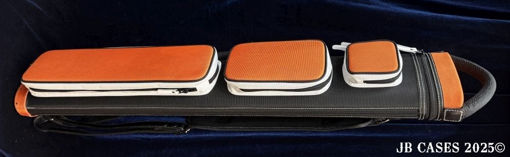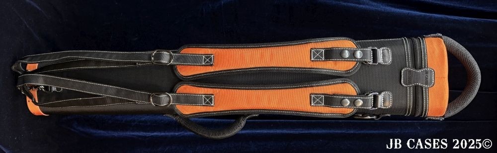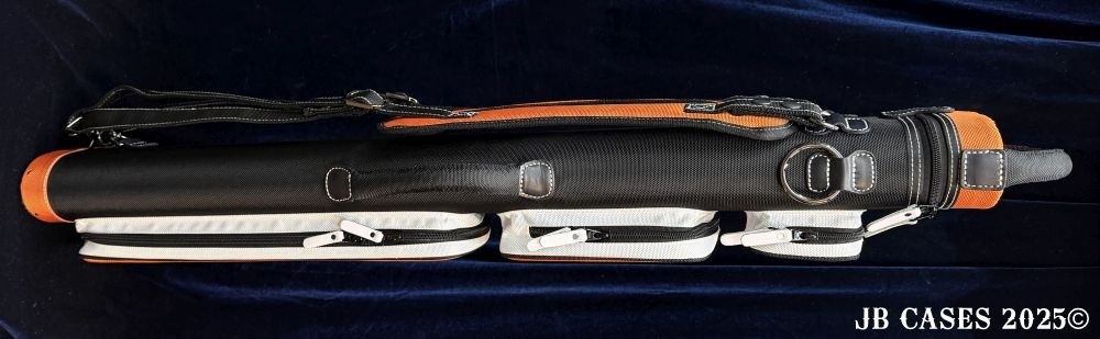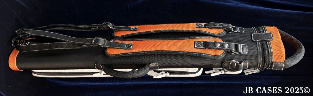 This case holds 2 butts and 5 shafts OR 3 butts and 4 shafts. Maximum interior length capacity is 32.5". This case is made of durable nylon/polyester material with reinforced leather stress points. Features an UltraPad interior, comfortable handles, a heavy duty rubber bottom, and a non-slip padded shoulder strap.