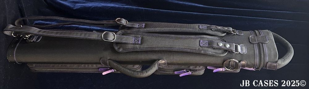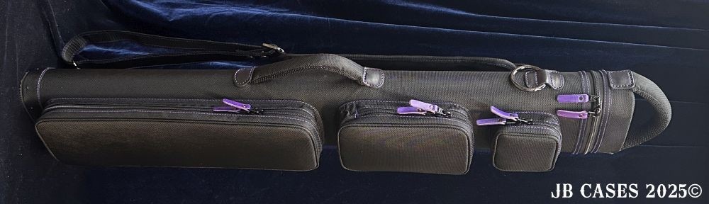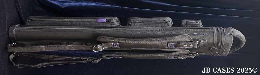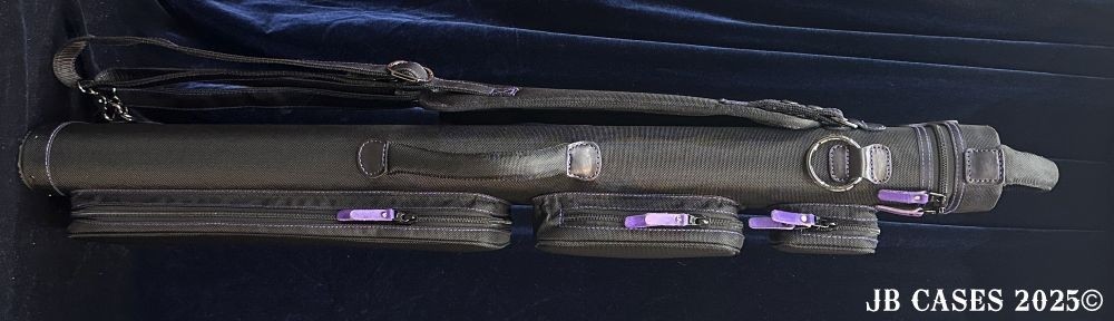 This case holds 2 butts and 5 shafts or 3 butts and 4 shafts. Maximum interior length capacity is 32.5". This case is made of durable nylon/polyester material with reinforced leather stress points. Features an UltraPad interior and very comfortable handles. Has a heavy duty rubber bottom. Featuring non-slip well padded backpack shoulder straps. Zippers are the highest quality available and each zipper has two pulls in case one should break. Three roomy pockets for easy access to your essentials.