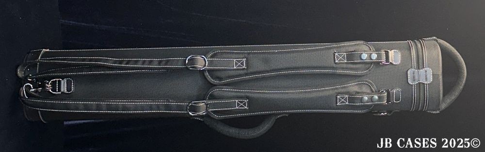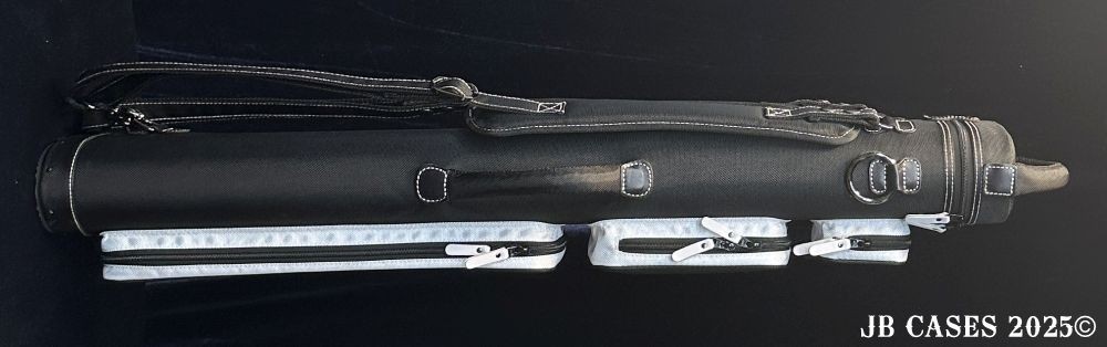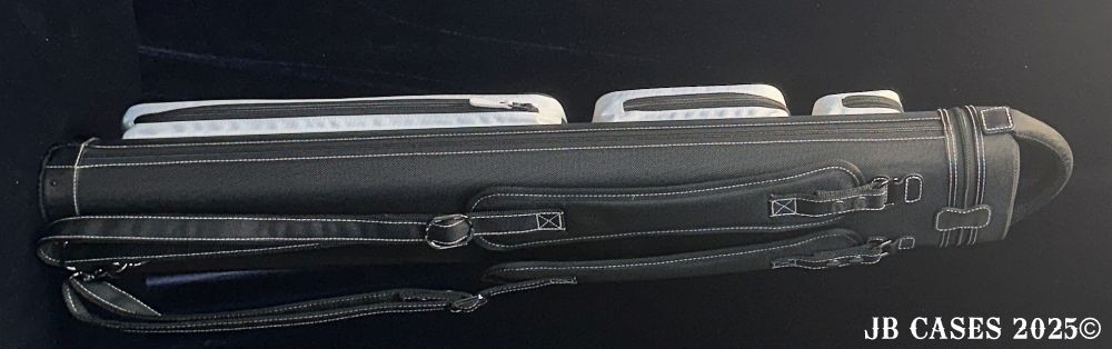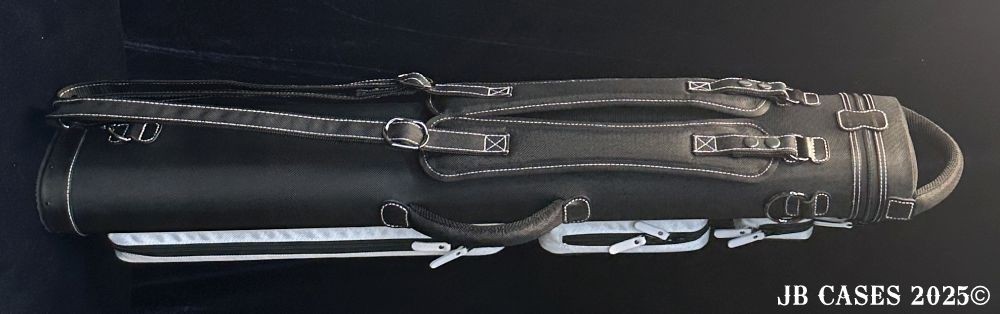 This case holds 3 butts and 6 shafts. Maximum interior length capacity is 32.5". This case is made of durable nylon/polyester material with reinforced leather stress points. Features an UltraPad interior, comfortable handles, a heavy duty rubber bottom, and a non-slip padded shoulder strap.