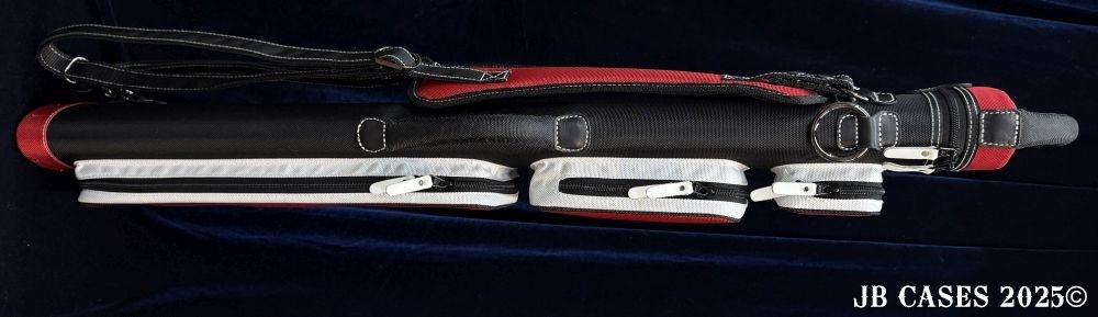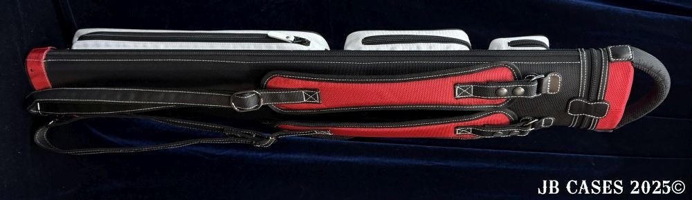 This case holds 3 butts and 6 shafts. Maximum interior length capacity is 32.5". This case is made of durable nylon/polyester material with reinforced leather stress points. Features an UltraPad interior, comfortable handles, a heavy duty rubber bottom, and a non-slip padded shoulder strap.