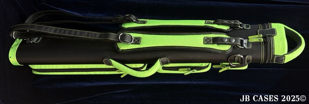 This case holds 3 butts and 6 shafts. Maximum interior length capacity is 32.5". This case is made of durable nylon/polyester material with reinforced leather stress points. Features an UltraPad interior, comfortable handles, a heavy duty rubber bottom, and a non-slip padded shoulder strap.