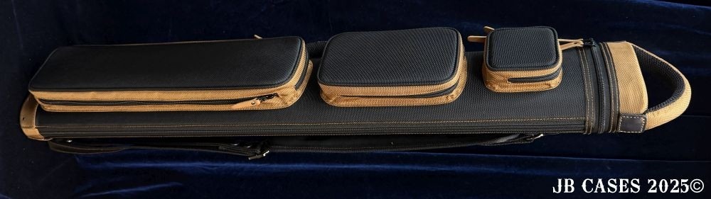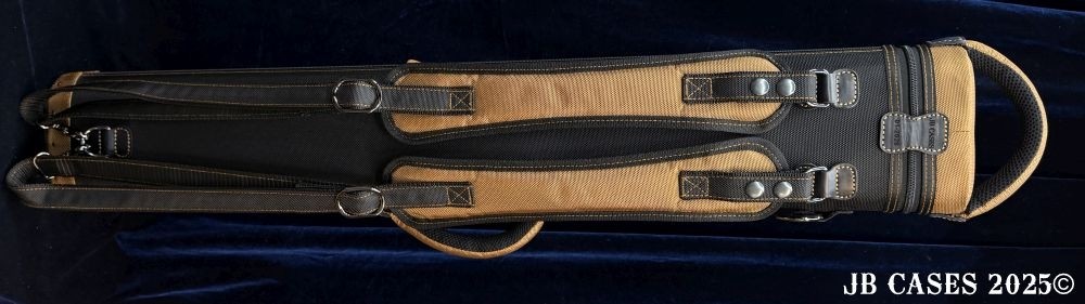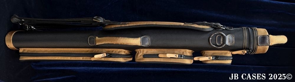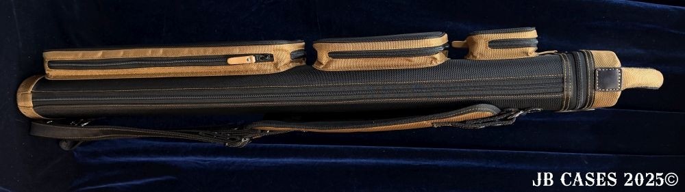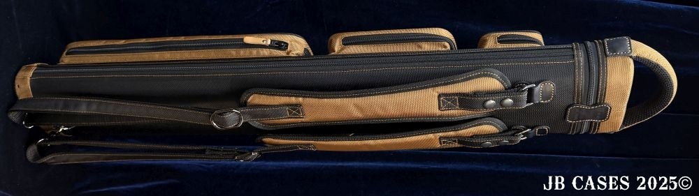 This case holds 4 butts and 8 shafts. Maximum interior length capacity is 32.5". This case is made of durable nylon/polyester material with reinforced leather stress points. Features an UltraPad interior, comfortable handles, a heavy duty rubber bottom, and non-slip padded backpack straps.